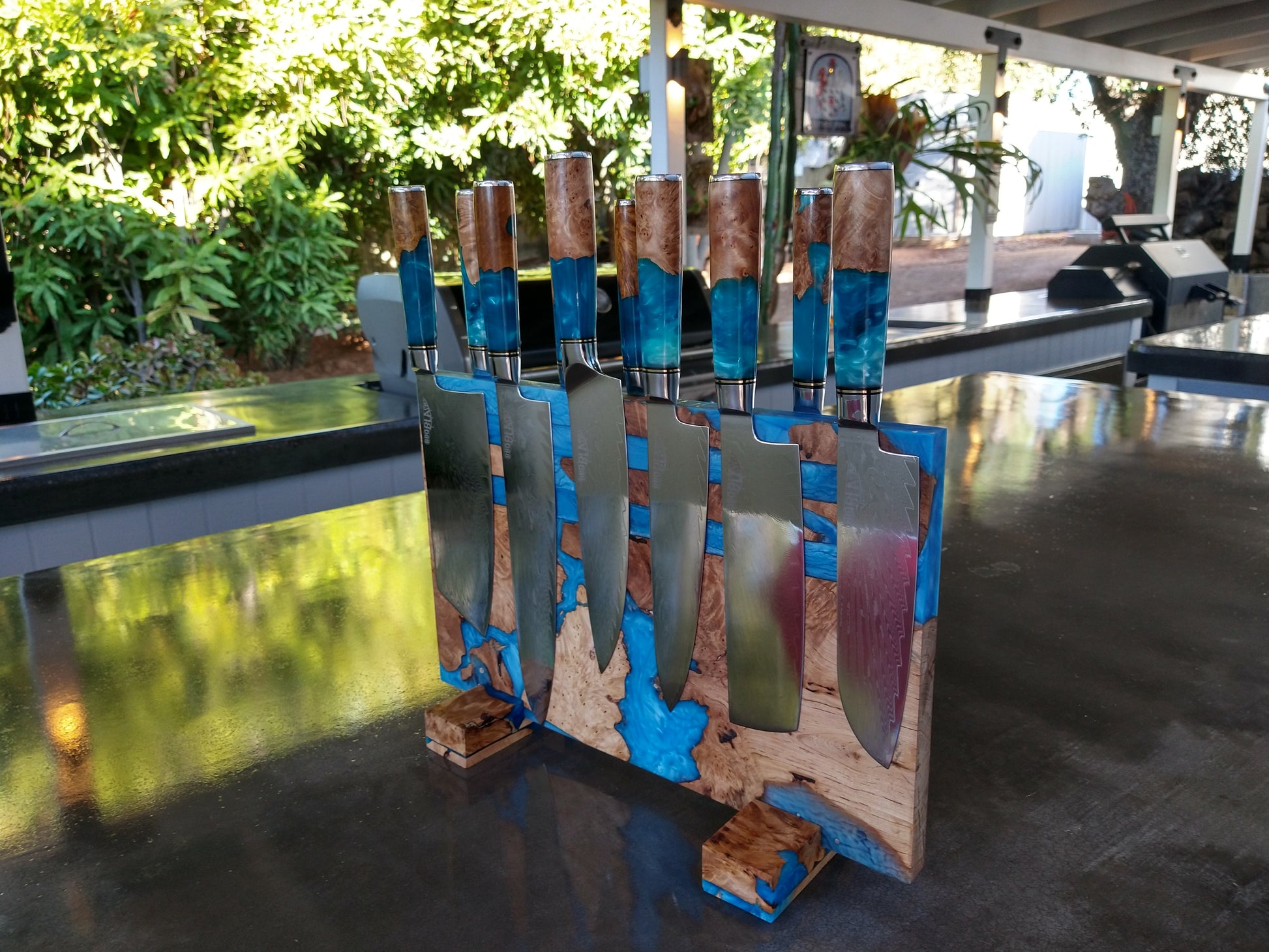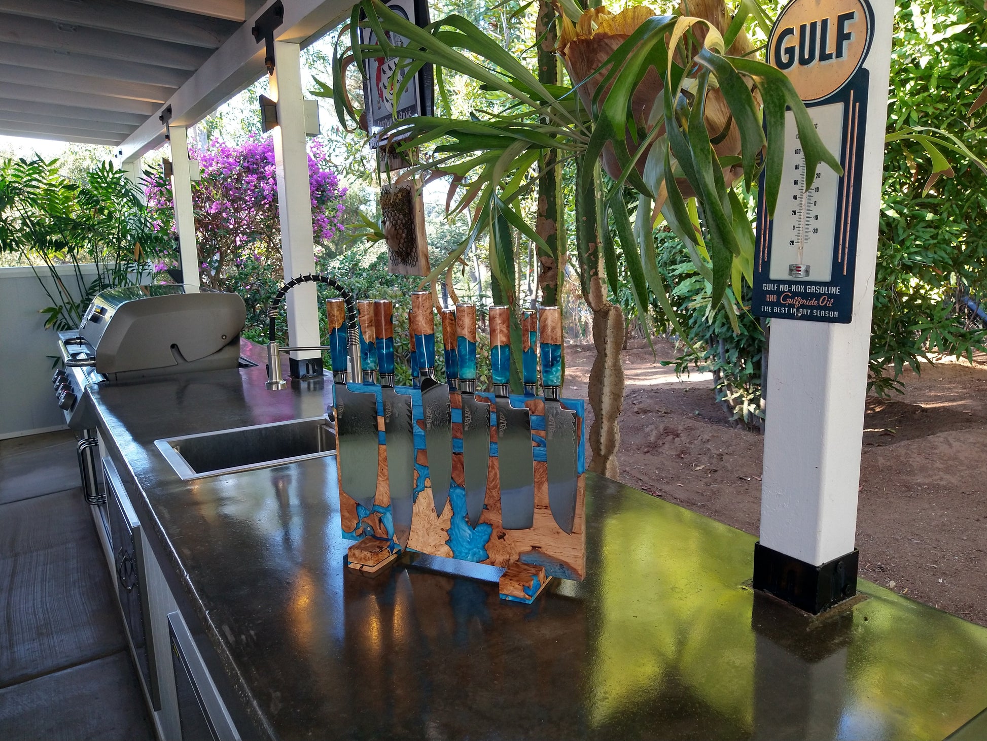 Our BBQ Blades™ Complete Cutlery Set will become the centerpiece of any chef's kitchen, butchery or BBQ area while being a conversation starter & adding eye popping flare.