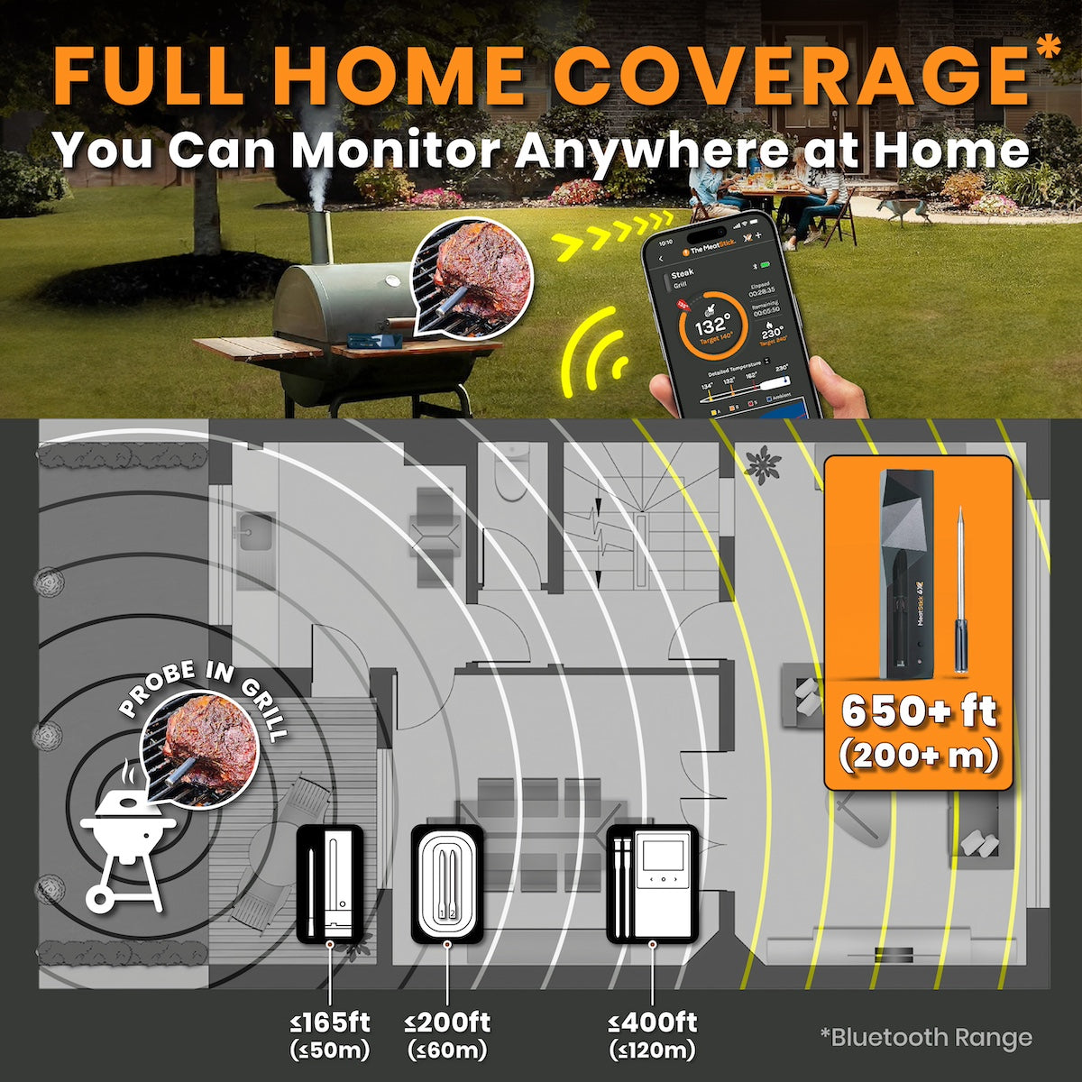 Revolutionize your grilling and smoking with MeatStick 4X Set - the ultimate leave-in wireless meat thermometer. Its Quad Sensors, Dual-Shell™ High Durability, and 650+ ft range can withstand harsh cooking environments and monitor accurate temperatures with our app. Enjoy juicy, smoky brisket, pulled pork, and more!