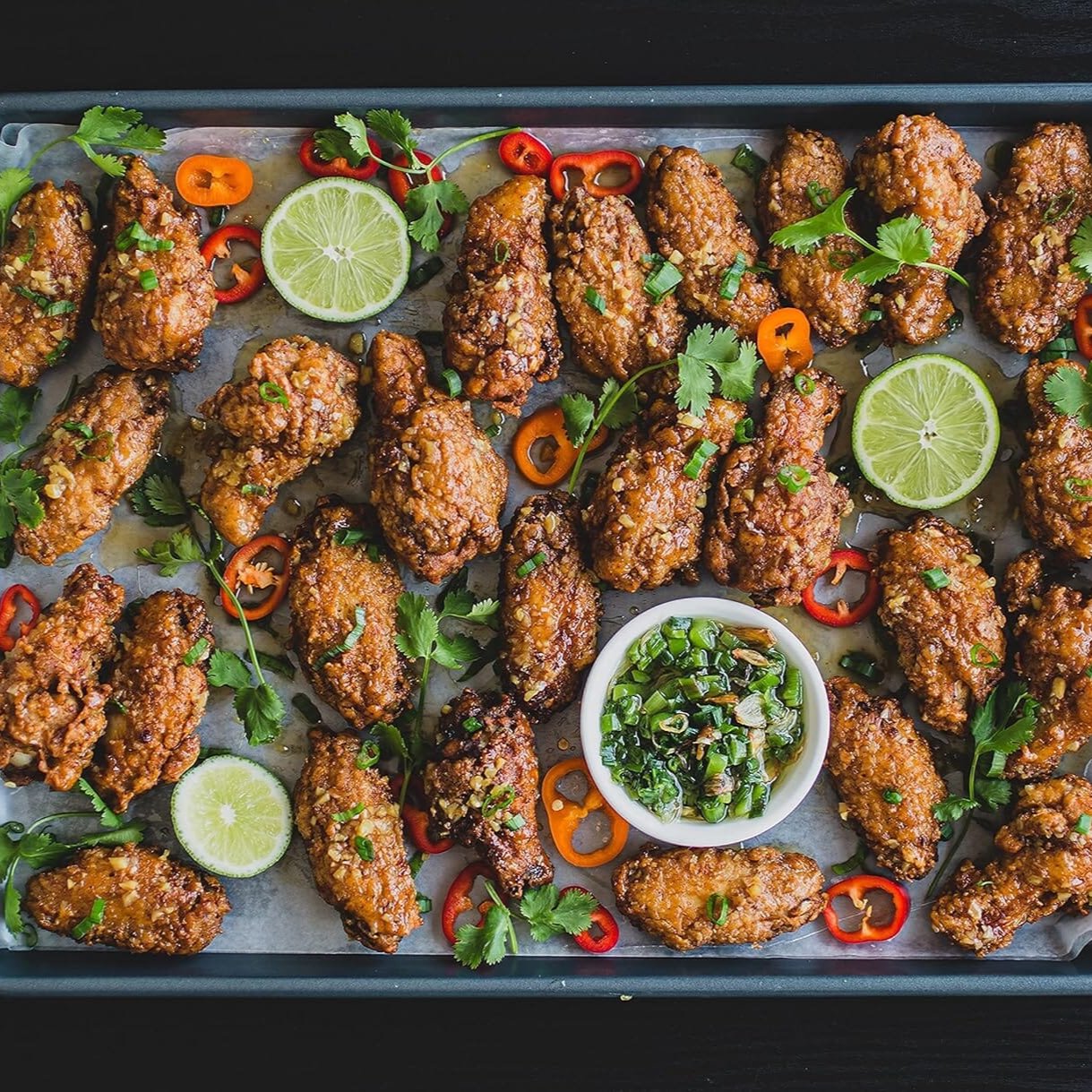• Everything But The Fried Chicken Seasoning: Garlic, Salt, Black Pepper, Sugar, Mustard Powder, White Pepper, Thyme, Sage, Celery, Basil, Chili Pepper, Ginger, Wasabi Powder, Honey, Rosemary.